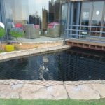 We manufacture our pool netting from super strong High Density Polyethylene braid (150kg tensile strength) Non corrosive brass eyelets and stainless steel hardware are used